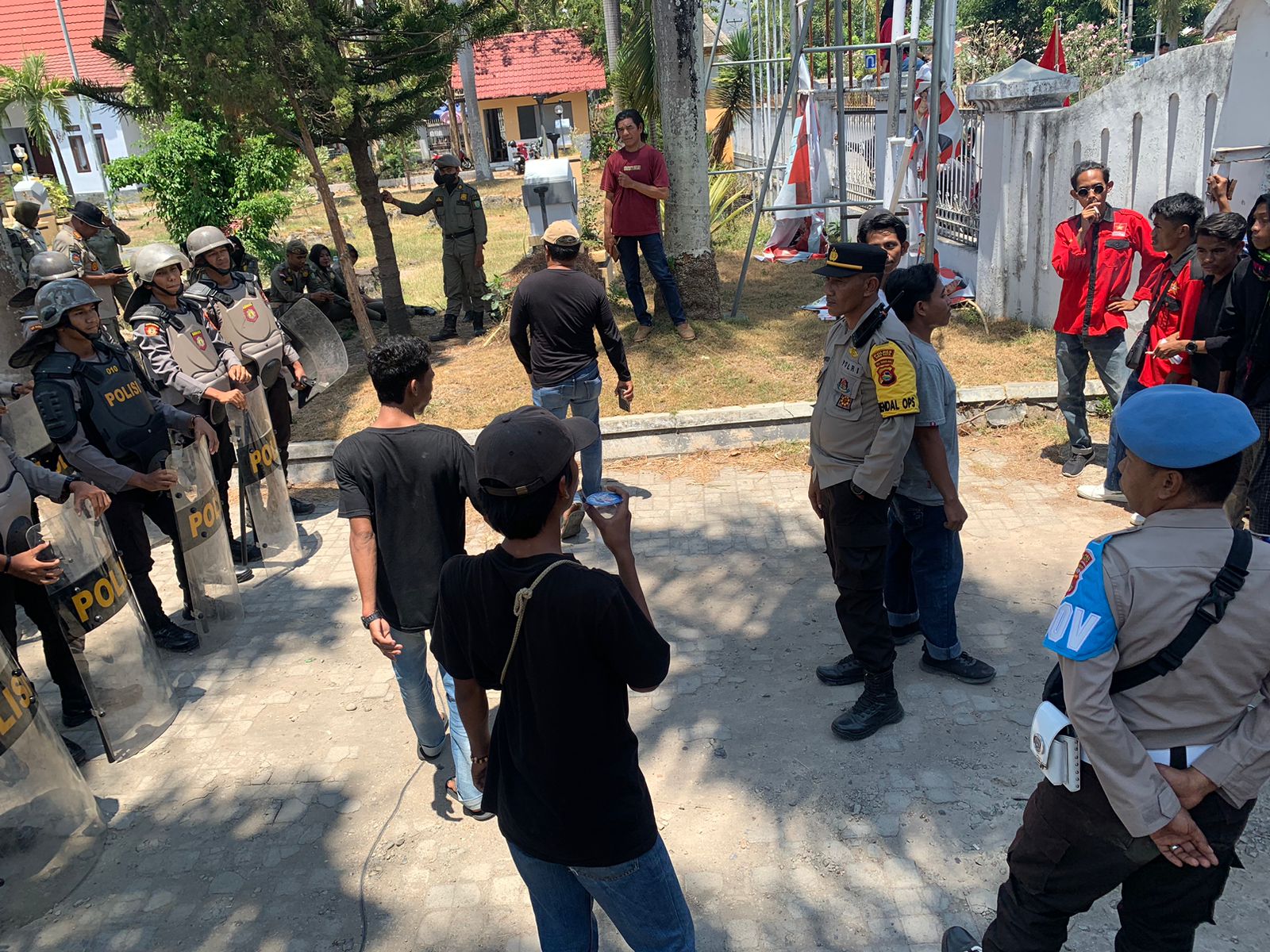 Kota Bima, NTB (27/9) – Sebanyak 102 personel dari Polres Bima Kota diterjunkan untuk melaksanakan pengamanan aksi demonstrasi yang diselenggarakan oleh Aliansi Mahasiswa dan Rakyat Bima. Demonstrasi ini berlangsung pada hari Rabu pagi ini di depan kantor Dewan Perwakilan Rakyat Daerah (DPRD) Kabupaten Bima.