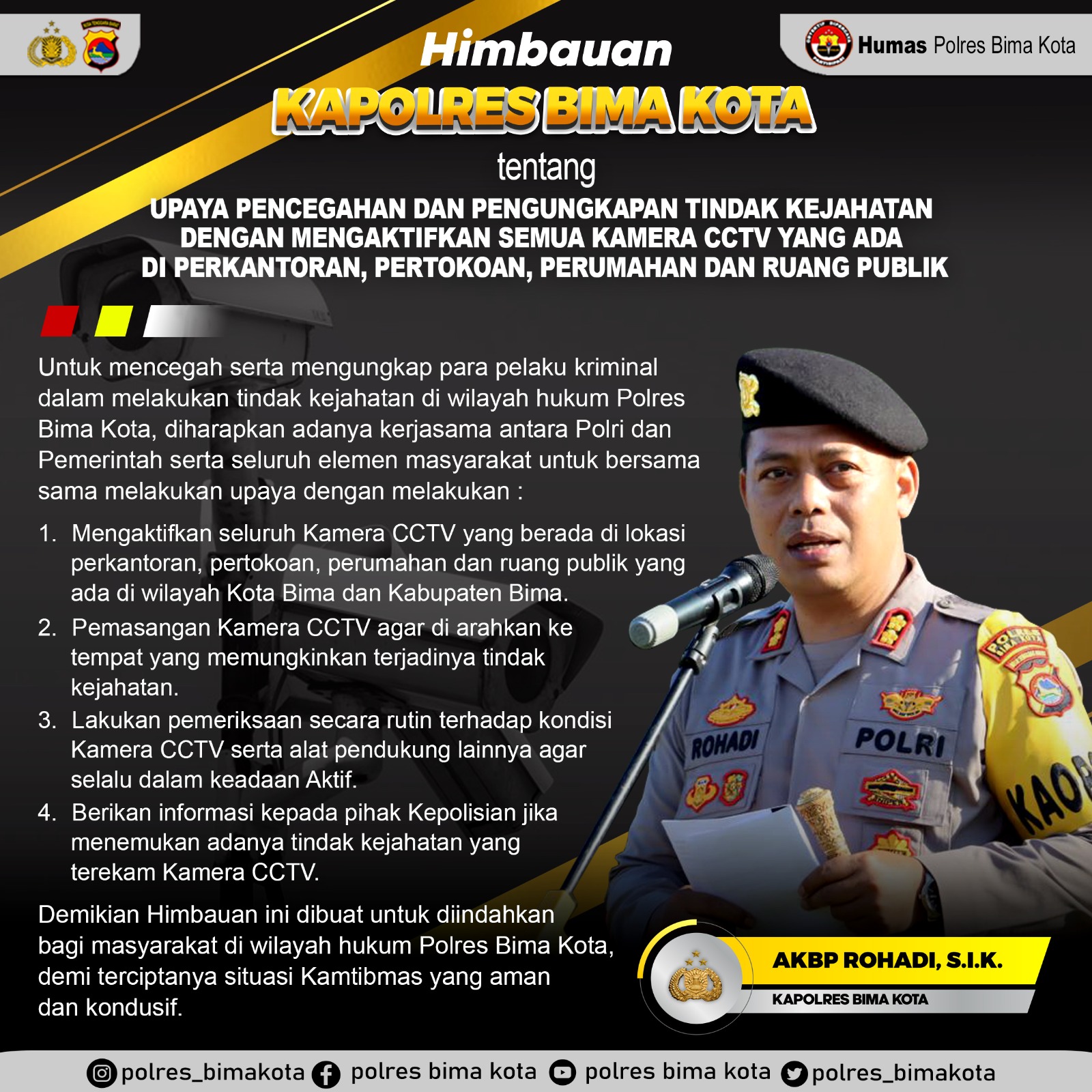 Himbauan Kapolres Bima Kota Untk Mengaktifkan Kamera CCTV Demi Keamanan Bersama