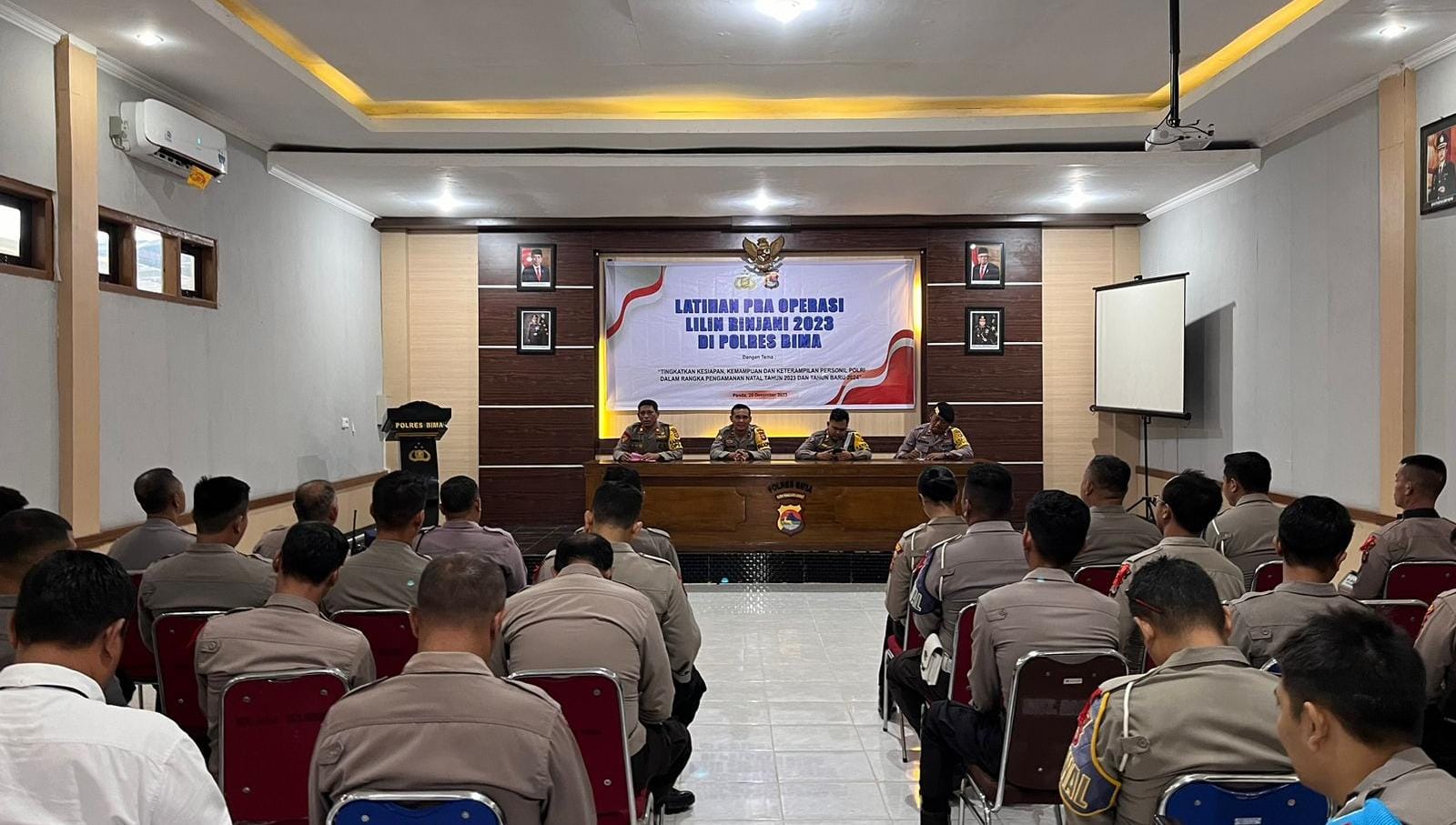 Bima, NTB (22/12) – Kapolres Bima AKBP Hariyanto, SH., SIK., diwakili Wakapolres Bima Kompol Saogi Sujana angsar memimpin Lat pra operasi Lilin Rinjani 2023 di Aula Mapolres Bima.