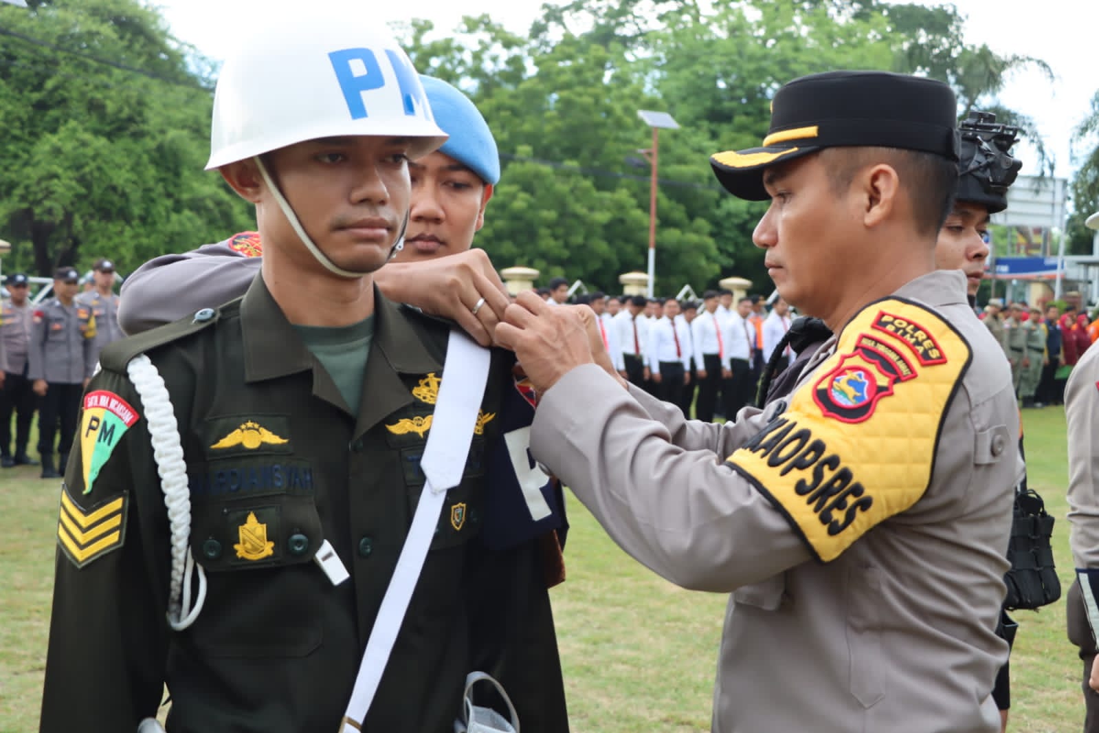 Sementara peserta upacara terdiri dari 1 Peleton Gabungan Perwira Polres Bima,1 Peleton TNI,1 Peleton Brimob Batalyon C Pelopor Bima,1 Peleton Samapta Polres Bima,1 Peleton sat Lantas Polres Bima,1 Peleton Staf Polres Bima,1 Peleton Bhabinkamtibmas Polres Bima,1 Peleton gabungan Sat Reskrim/Intelkam/Narkoba Polres Bima,1 Peleton Dishub, 1 Peleton Dispenda Kabupaten Bima,1 Peleton Pol PP Kabupaten Bima,1 Peleton Pos SAR Bima, 1 Regu Tenaga Medis Dinkes Kabupaten Bima.1 Peleton BPBD,dan satu 1 Regu Senkom Bima.