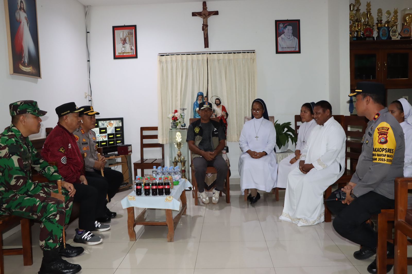 Usai pengecekan Pos Pam dan Pos Pelayanan, rombongan melanjutkan kegiatan dengan melakukan sambang di Gereja Katolik St. Yusuf Bima, Kelurahan Rabangodu Utara, Kecamatan Raba, Kota Bima. Dalam sambang tersebut, Kapolres dan Pj Wali Kota berkesempatan meninjau pelaksanaan Misa Natal yang dihadiri oleh sekitar 525 jemaat.
