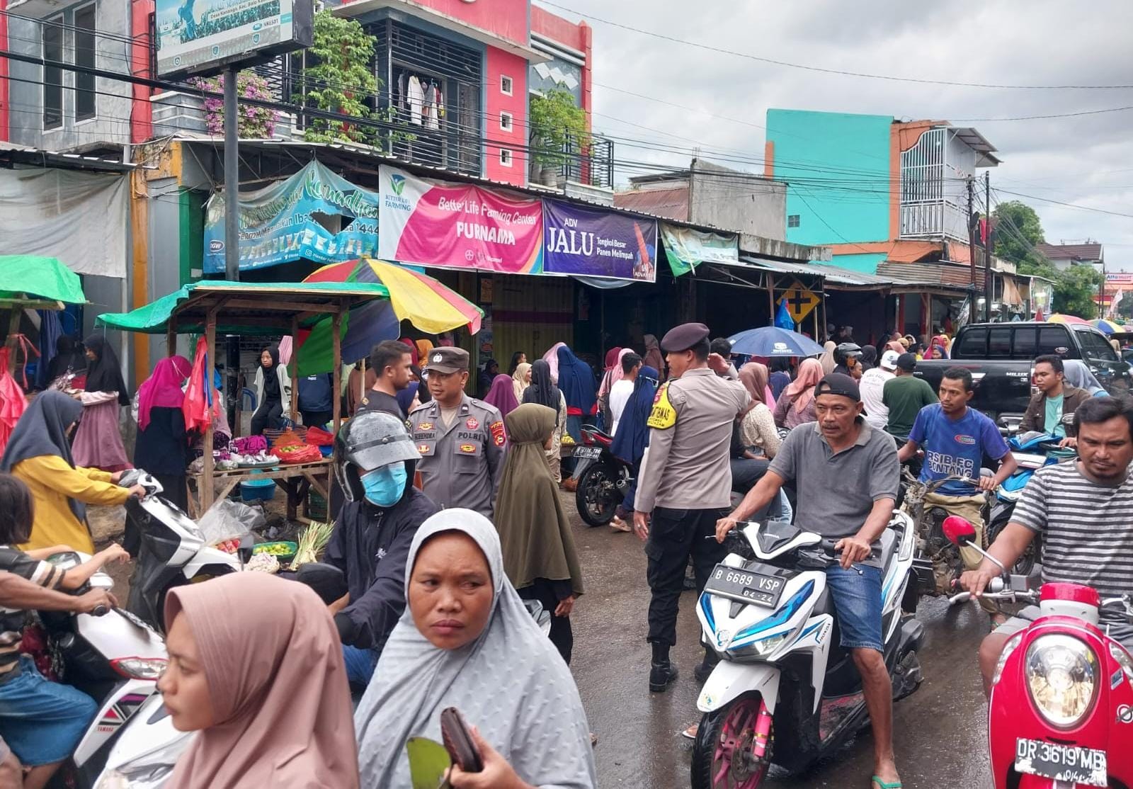 Bima, NTB (14/3) – Guna mengantisipasi terjadinya kemacetan menjelang berbuka puasa, Personil Polsek Bolo Polres Bima Polda NTB melakukan pengamanan dan pengaturan lalu lintas, di jalan raya dan di tempat berjualan jajanan berbuka puasa.