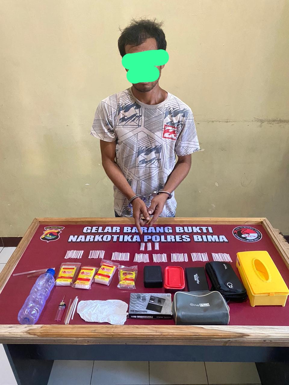 Saat ini terduga pengedar narkoba bersama sejumlah barang bukti diamankan di Mapolres Bima untuk diproses hukum lebih lanjut.