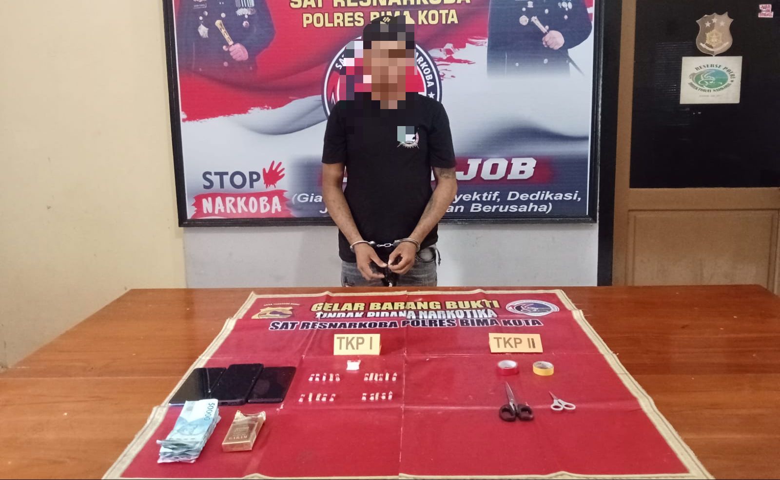 Kota Bima, NTB (21/3) – Tim Opsnal Sat Narkoba Polres Bima Kota berhasil menggagalkan peredaran narkoba di wilayah Kota Bima dengan berhasil menangkap seorang pengedar narkoba jenis sabu, ARF (29). Penangkapan ini dilakukan pada Selasa kemarin, sekitar pukul 15.00 WITA di wilayah Asakota Kota Bima.