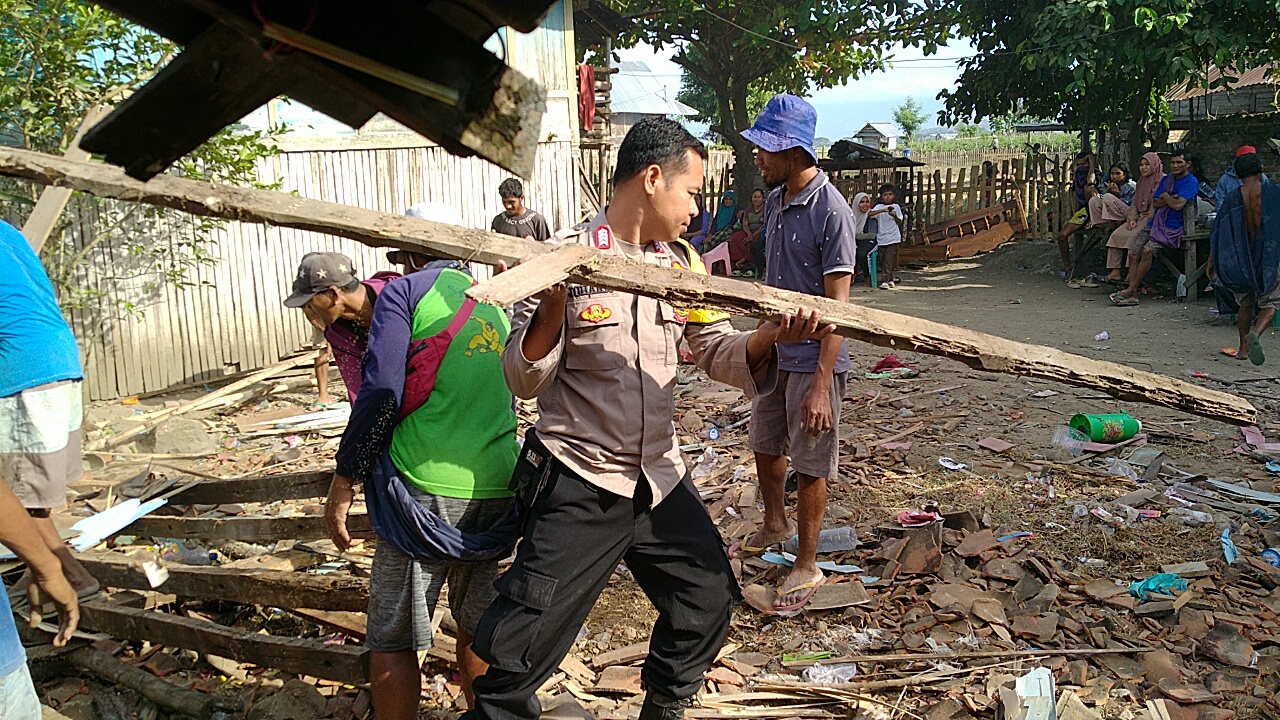 Seperti halnya yang dilakukan oleh bhabinkamtibmas Polsubsektor Palibelo Polres Bima Polda NTB Bripka Satriadi Joharis S.sos. yang membantu proses pembongkaran rumah salah warga Binaannya.
