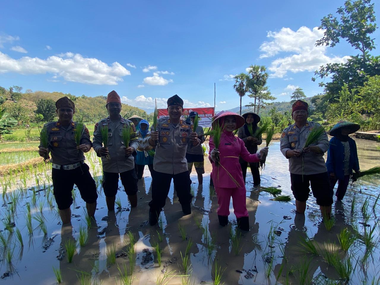 Pada Selasa, 26 Juni 2024, sekitar pukul 11.30 WITA, Kapolres Bima Kota AKBP Yudha Pranata didampingi langsung oleh Ketua Bhayangkari Cabang Bima Kota, Diah Yudha Pranata, berkesempatan bersama warga tani di persawahan Kelurahan Nungga, Kecamatan Rasanae Timur, Kota Bima, melakukan penanaman padi perdana pada musim tanam.