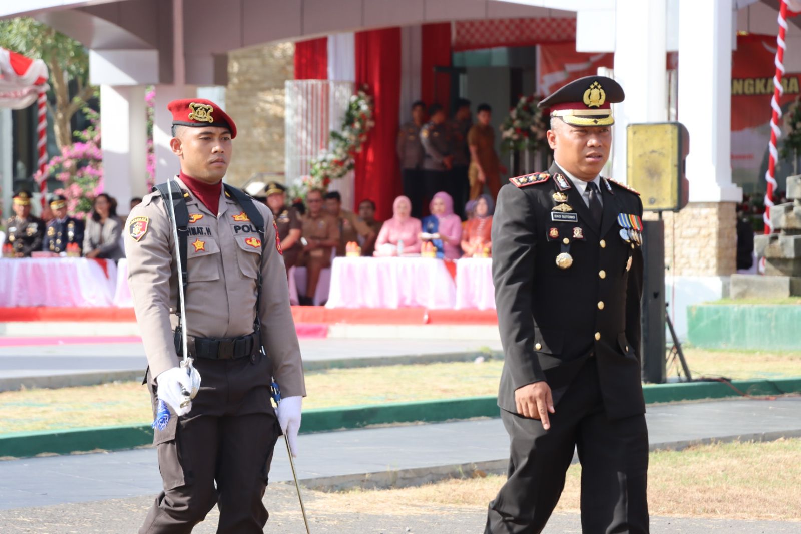 Bertindak sebagai Inspektur Upacara (Irup), Kapolres Bima, Ajun Komisaris Besar Polisi (AKBP), Eko Sutomo S.I.K., M.I.K., dan Komandan upacara, IPDA Rahmat Hidayat S.Tr.K.