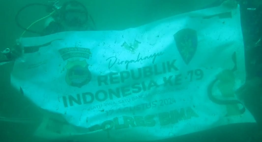 Sambut HUT Kemerdekaan RI Ke-79, Polres Bima Kibarkan Bendera Merah Putih di Dasar Laut