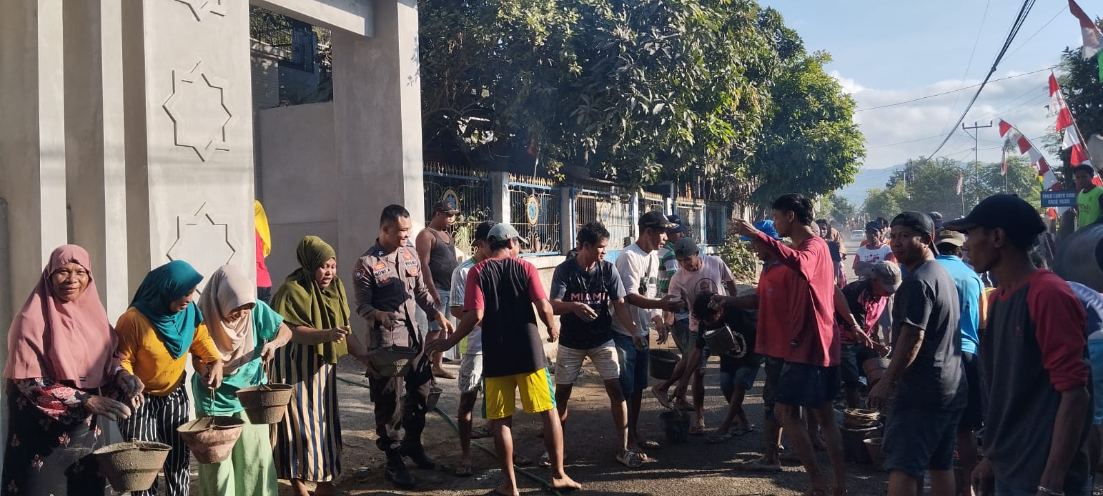 Bima, NTB (25/8) – Bhabinkamtibmas Desa Rade Polsek Madapangga Polres Bima Polda NTB  melaksanakan gotong royong bersama warga untuk pembangunan Masjid Sarifuddin Desa Rade Kecamatan Madapangga Kabupaten Bima.
