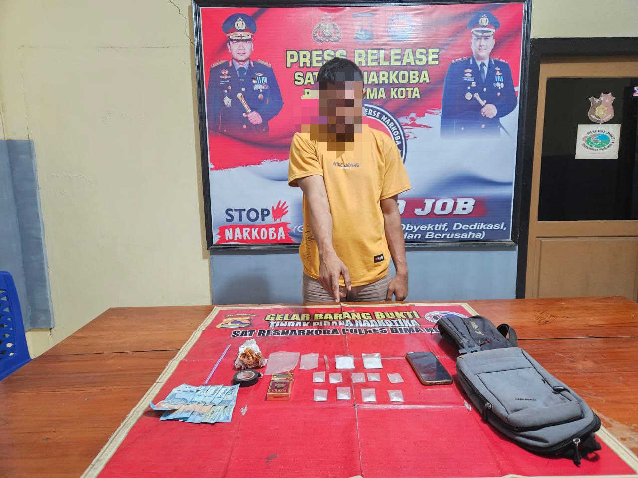 Kapolres Bima Kota, AKBP Yudha Pranata, melalui Kasat Resnarkoba, Iptu Dediansyah, mengonfirmasi penangkapan ini pada Kamis pagi. Dalam penggerebekan yang disaksikan oleh tokoh masyarakat setempat, petugas berhasil menemukan sejumlah barang bukti.