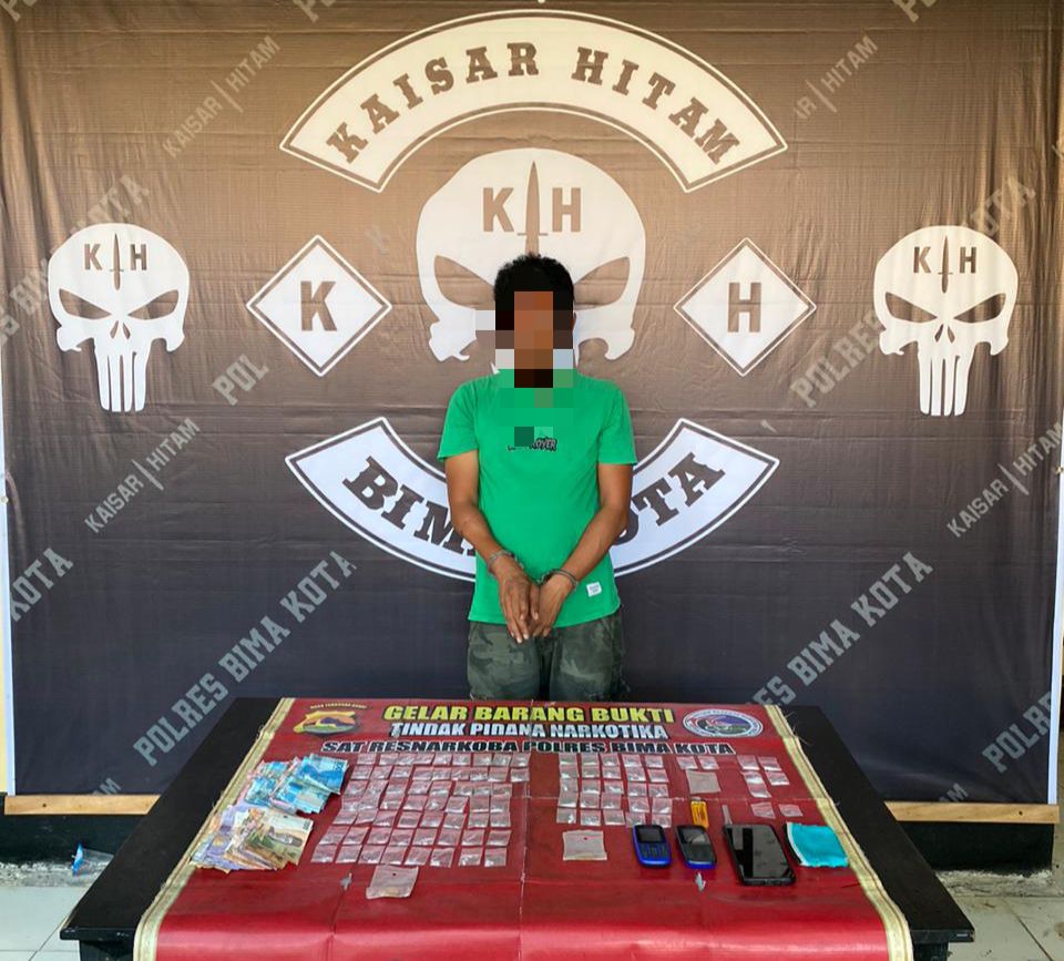 Kota Bima, NTB (29/9) – SH (42), seorang pengedar narkoba jenis sabu, berhasil dibekuk oleh Tim Kaisar Hitam dari Satuan Reserse Narkoba (Sat Resnarkoba) Polres Bima Kota. SH, warga Kelurahan Melayu, Kecamatan Asakota, Kota Bima, ditangkap pada Sabtu dini hari, 28 September 2024, sekitar pukul 01.00 WITA, melalui penggerebekan yang dilakukan di rumahnya yang berada di wilayah hukum Polres Bima Kota.