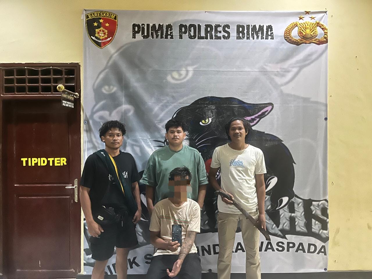 Bima, NTB (31/1) – Tim Puma Satuan Reserse Kriminal umum Polres Bima Polda NTB berhasil membekuk terduga pelaku jambret yang beraksi merampas satu unit handphone di jalan lintas Bima Sumbawa Desa Kalaki Kecamatan Palibelo Kabupaten Bima.