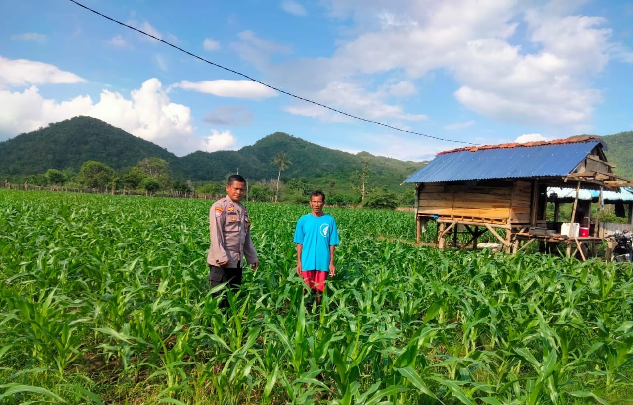 Bima, NTB (19/2) – Dalam upaya mendukung program ketahanan pangan nasional dan swasembada pangan, anggota Bhabinkamtibmas Polsek Monta Polres Bima Polda NTB melakukan monitoring dan pengecekan tanaman jagung