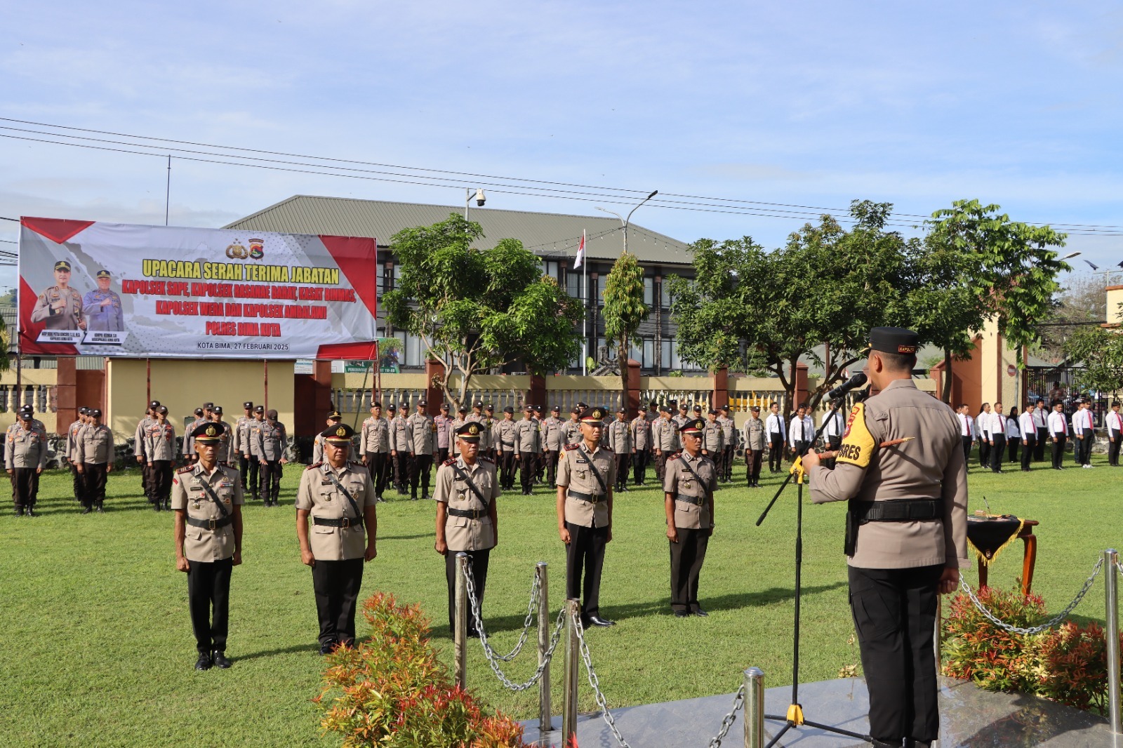 Kota Bima, NTB (27 Februari 2025) – Kapolres Bima Kota, AKBP Didik Putra Kuncoro, S.I.K., M.Si., memimpin langsung Upacara Serah Terima Jabatan (Sertijab) Kasat Binmas dan Kapolsek Rasanae Barat, Kapolsek Ambalawi, serta Kapolsek Wera, yang dilaksanakan di Lapangan Apel Presisi Polres Bima Kota pada Kamis (27/2/2025) pukul 08.00 WIB.