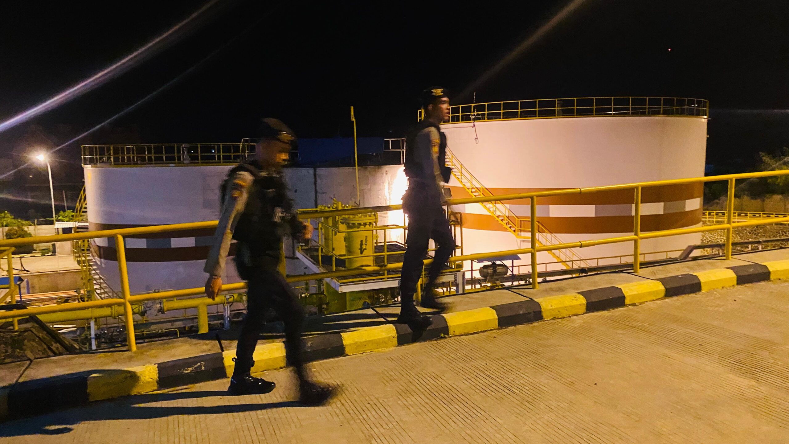 Kapolres Bima Kota, AKBP Didik Putra Kuncor, S.I.K., M.Si., melalui Kasi Humas Ipda Baiq Fitria Ningsih menyampaikan bahwa Anggota Unit Obvit Sat Samapta Polres Bima Kota secara intensif melakukan patroli dan pengamanan di beberapa titik strategis, seperti kantor BSDG, area mesin filter udara, serta gardu penghantar listrik.