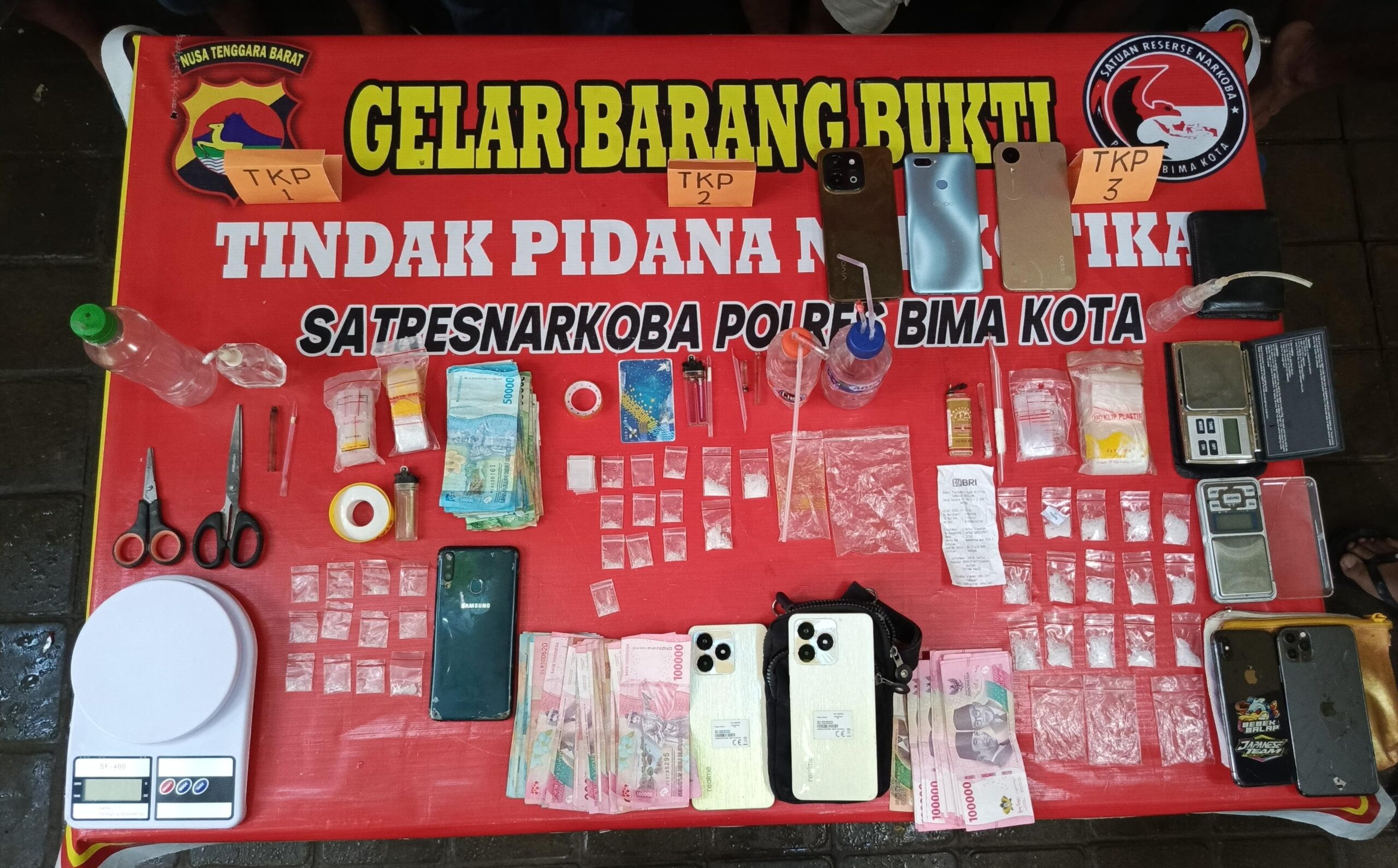 “Enam pelaku berikut barang bukti telah diamankan di Mako Polres Bima Kota untuk pemeriksaan lebih lanjut. Tes urine akan dilakukan terhadap para tersangka, dan barang bukti juga akan diuji laboratorium,” tambah Kasat Narkoba.