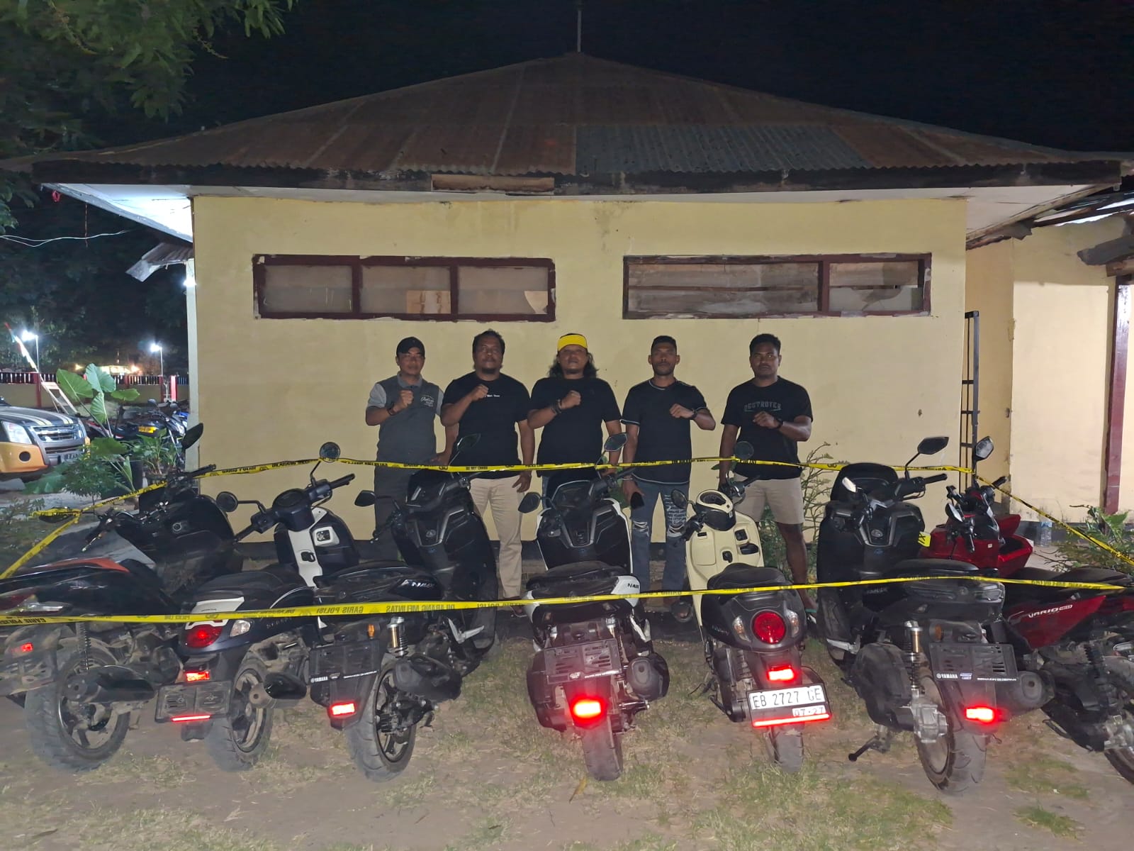 Adapun barang bukti yang berhasil diamankan adalah 1 unit sepeda motor (SPM) merk Honda PCX warna hitam, 3 unit SPM merk Yamaha NMAX, 2 unit SPM merk Honda Scoopy, 1 unit SPM merk Honda Vario warna merah maroon.